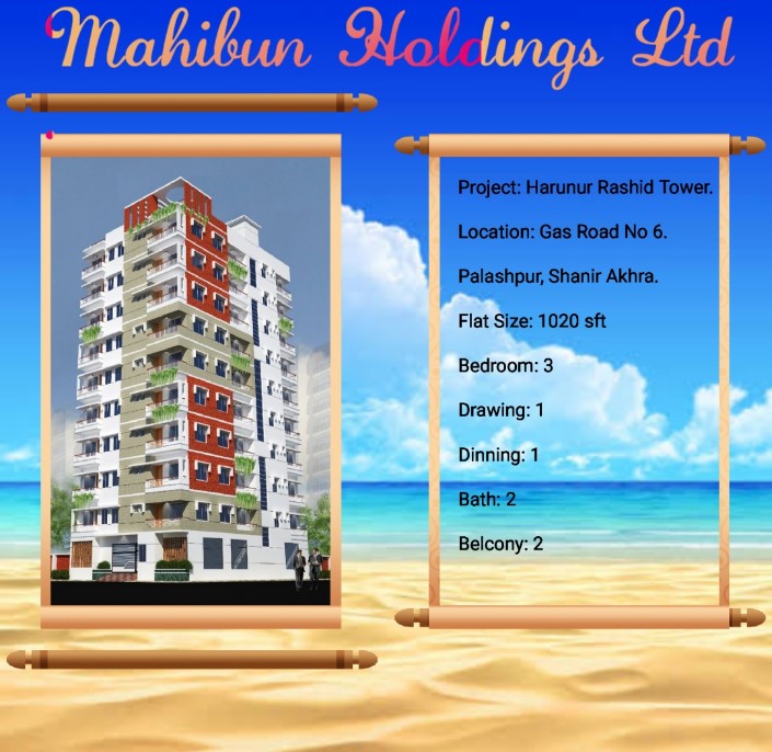 PROPERTY FEATURES Property Name: Harunur Rashid Tower Property Type: Apartment / Flat Property For: Sale Property Location: Rayerbag Construction Status: Under Construction Property Size: 1020…